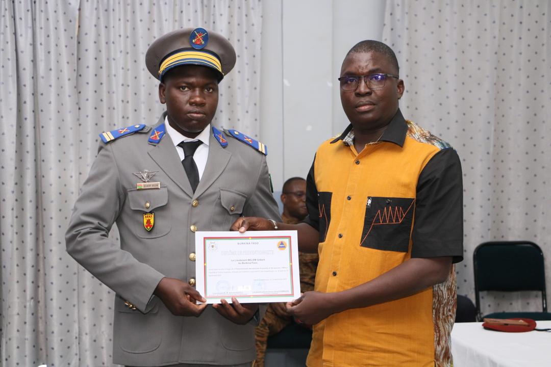 La cérémonie a été marquée par la proclamation des résultats par le Directeur de cours, le lieutenant-colonel WANGO Rasmané, suivie de la remise solennelle des diplômes. Intervenant au nom du Directeur Général de l’ISEPC, le Secrétaire Général a félicité les stagiaires et souligné l’importance stratégique de la prévention pour la sécurité des populations et de leurs biens, la protection des personnes et de leurs biens.