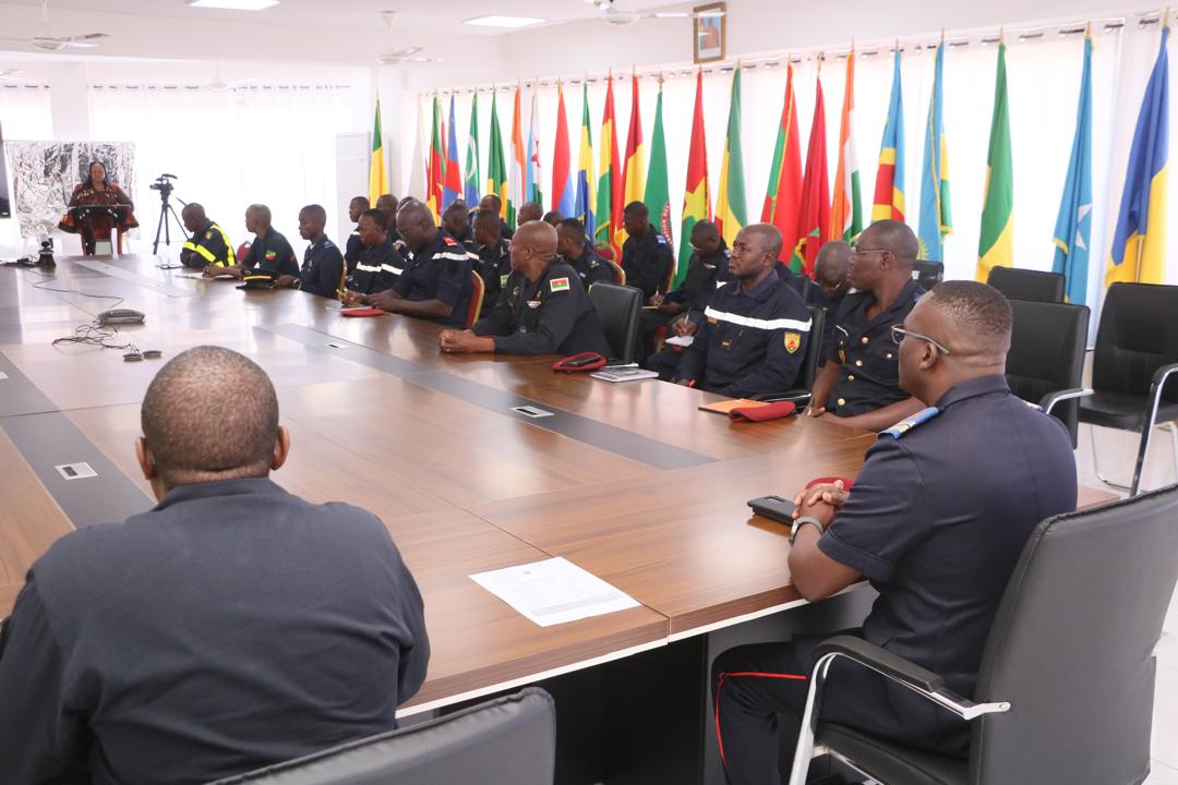 This session has twenty-two (22) participants from 13 African countries: Benin, Cameroon, Central African Republic, Comoros, Congo-Brazzaville, Gabon, Guinea, Equatorial Guinea, Mali, Niger, Rwanda, Togo, and Burkina Faso. They have come to enhance their skills in managing interventions, coordinating teams, and making decisions in crisis situations.